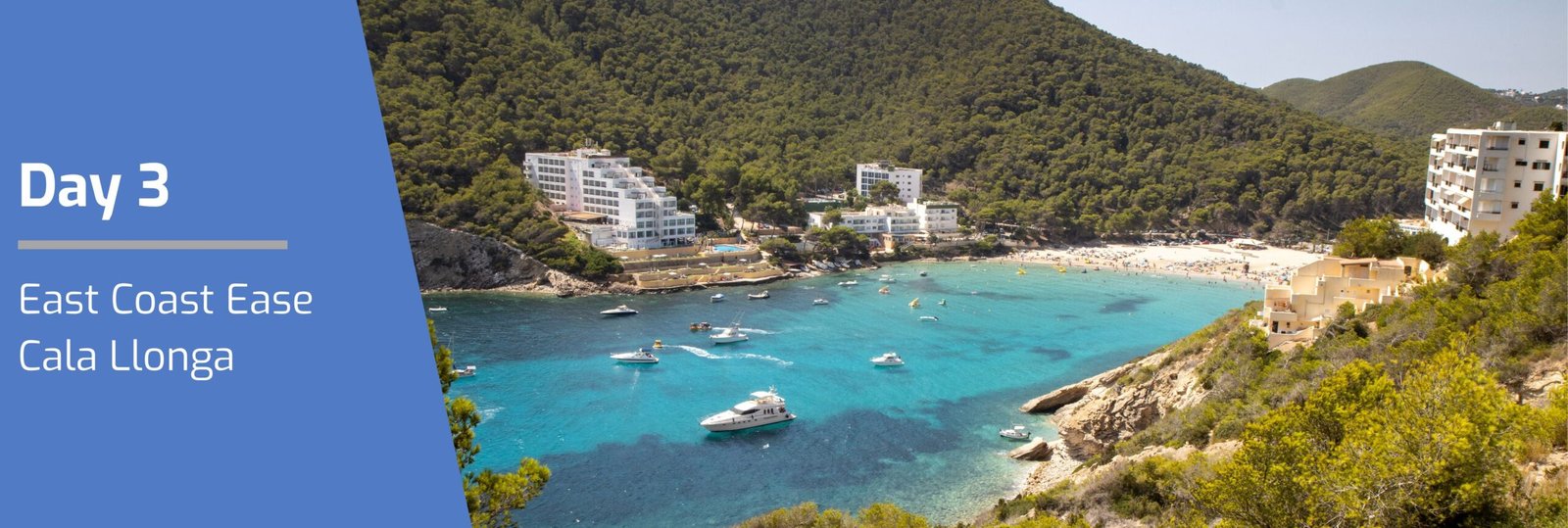 A calm sail heading north along Ibiza’s east coast passing the stunning UNESCO listed Dalt Villa and Ibiza harbour before we arrive in the quaint cala (Bay) of Cala Llonga